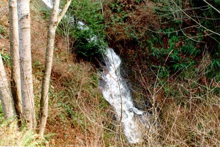 Falls by the side of the road.